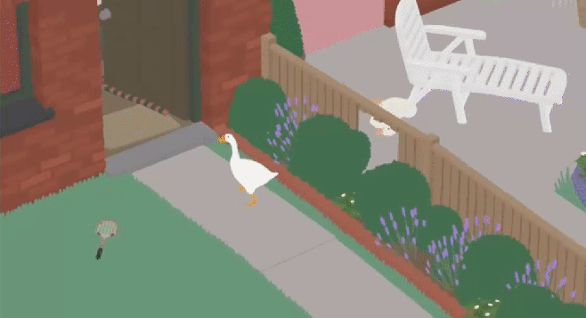 There comes a point where you must walk through someone’s home to progress. Now, you do not really get to see the interior of the house, or where you are inside it. But trying to move in any direction while inside the house will do the same general thing: lead you to the exit, and knock down whatever shit that’s in the house that lay in your path. As such, you are staring at the exterior as you hear the stranger’s possessions crash and shatter, you are filled with the joy that comes from the simultaneous silliness and reality that this is exactly what would happen if a goose got into a person’s house.
